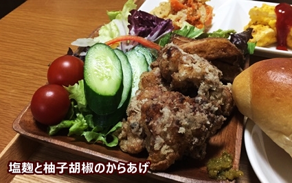 からあげも簡単な仕込みでできる塩麴と柚子胡椒で。