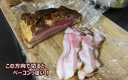 脂たっぷりですが、購入するベーコンと違って