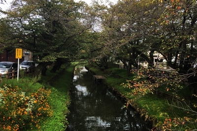確かに立派な桜の木が綺麗に川の上に渡ってました。