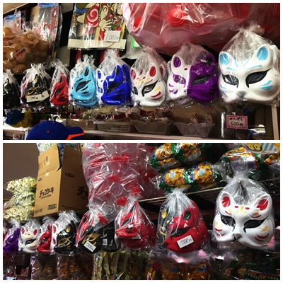 駄菓子屋さんもあって、キツネのお面が沢山売っていました。