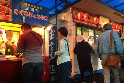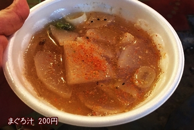 買い物を始める前に、まぐろ汁を購入してお腹を満たします♪