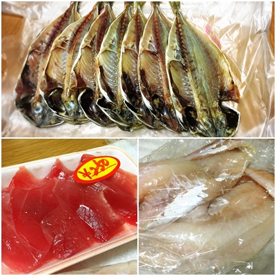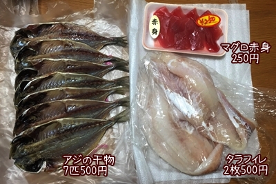 そして入口のお魚屋さんでアジの干物とタラフィレ。