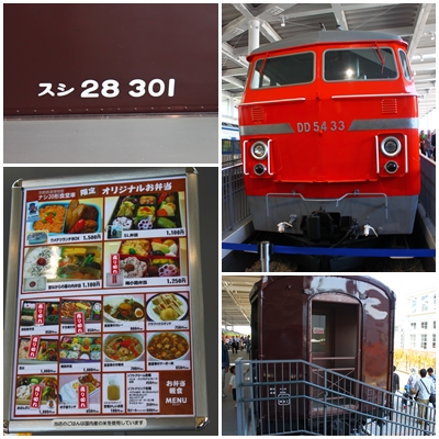 左上 昭和8年製造のスシ28形。食堂車でこの中で食事も食べられる。