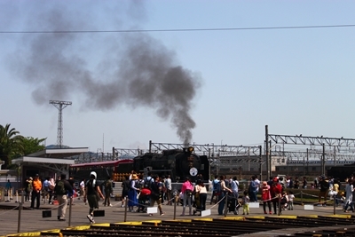 先頭で電車を撮ってたら、汽笛を鳴らしてくれた♪