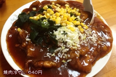 焼肉冷やしは、沢山の豚肉があんかけになっていて、