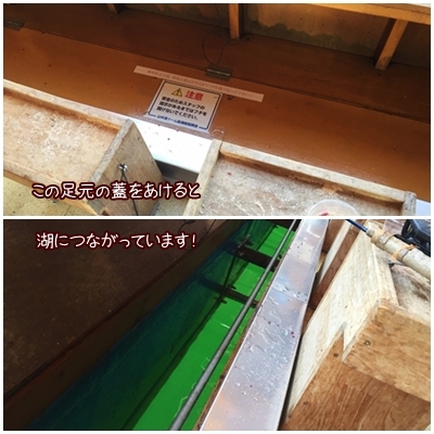 駐車場から湖方向に歩いて30秒程で受付があります!