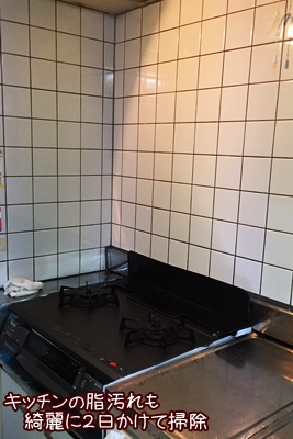 私は待ってる間にキッチンの脂汚れを掃除して、