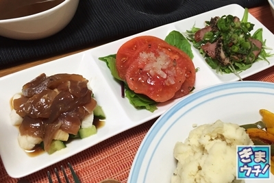 三崎マグロ漬け、湯向きトマト、合鴨にしてみました。