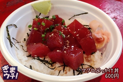 マグロ丼を1つ、マグロ汁を2つかって立食!