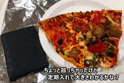 ピザを購入して、おうちに着くまでのお腹を満たすため