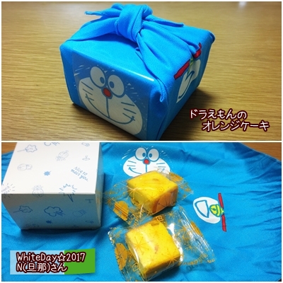 ドラえもんのハンカチに包まったオレンジケーキです。